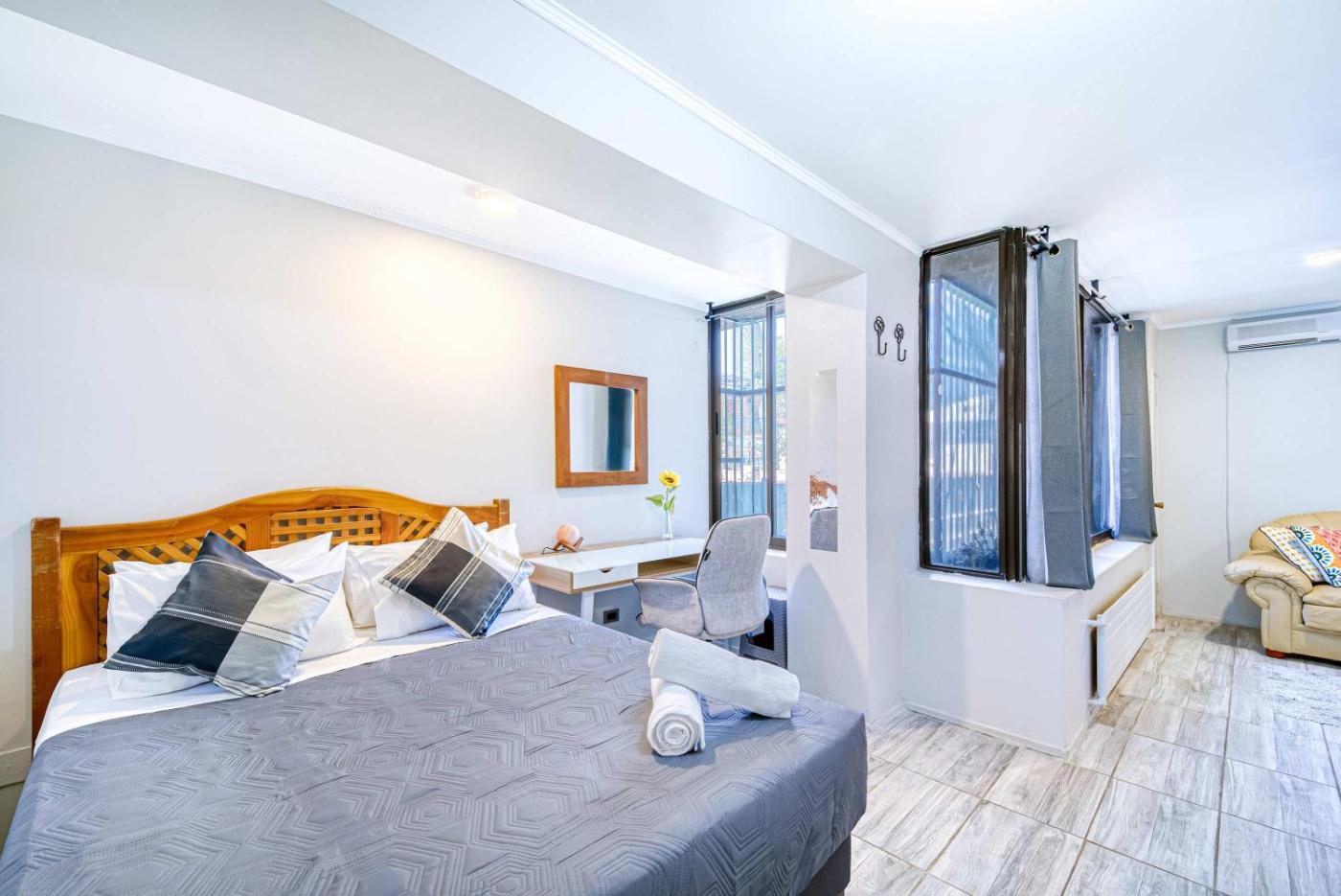 Apartment. The apartment features air conditioning, a washing machine, as well as a private bathroom boasting a hairdryer. Guests can make meals in the kitchen that features a stovetop, a refrigerator, kitchenware and an oven. This apartment has a tea and coffee maker, a wardrobe and a TV. The unit has 1 bed.